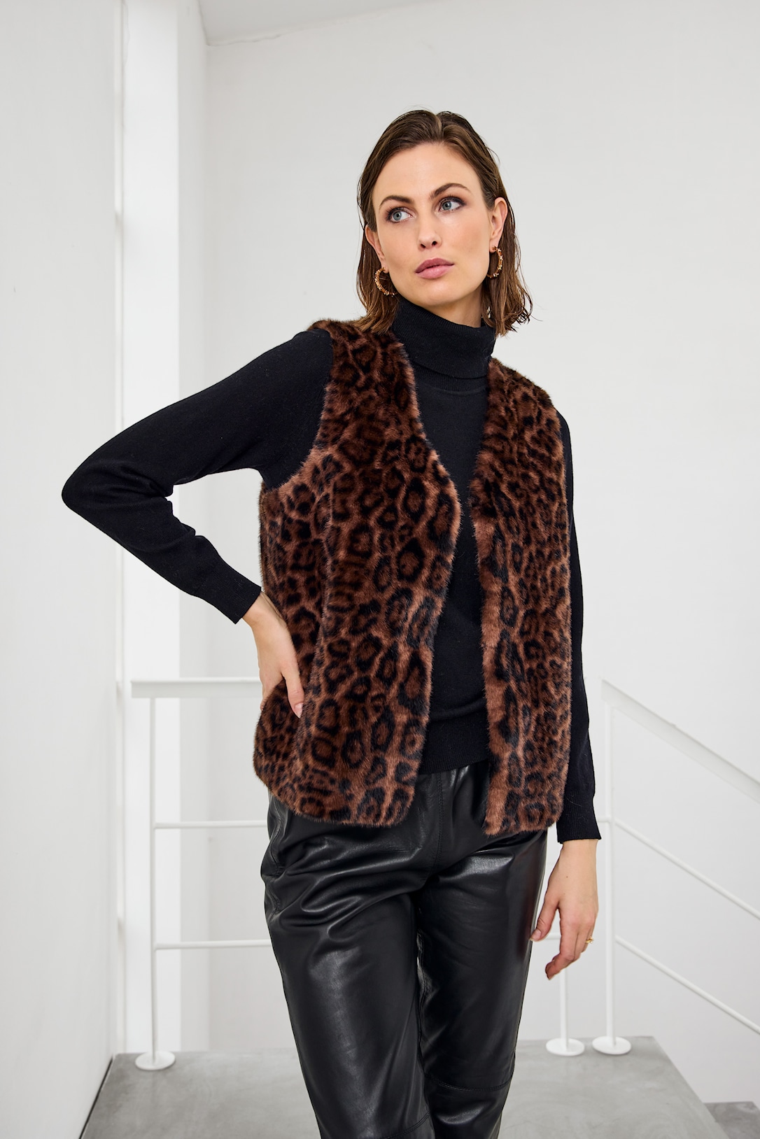 • Micha 105372 Faux fur gilet in dark brown and black leopard print