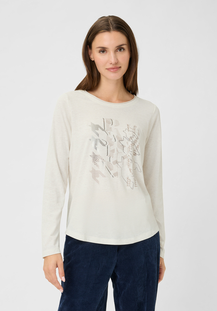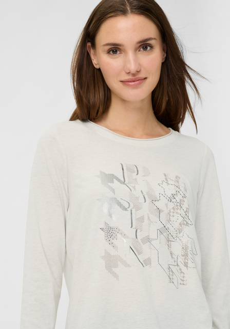 • Olsen 11105240 Hannah Fit Ivory Marled Long Sleeved Top with front design