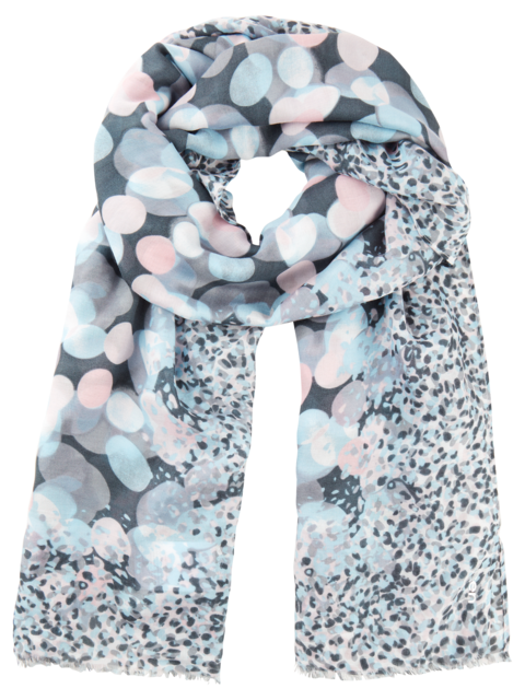 Stunning co-ordinating scarf to all this season’s Olsen’s Cosmic Chic range. In beautiful shades of satin blue, pink and grey it will stay in your wardrobe for many years. Extremely soft to touch and twists into many styles of neck tie.